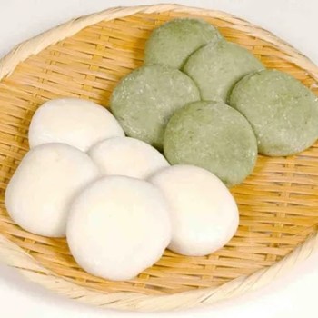 厳選した国産もち米をセイロで蒸し上げ、丹念につきあげたコシのある生地で北海道産小豆100%の粒あんを包みました。よもぎは国産物を使用。